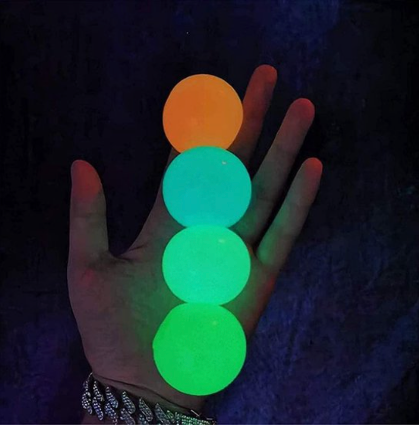 They are really soft, feel super nice and have a very calming effect. Lie back on your bed or couch and throw the Glowballz ™ against the ceiling one by one. They stick for a few seconds, after which they drop so you can throw them against the ceiling again. Repeat this a few times and you are guaranteed to calm down!